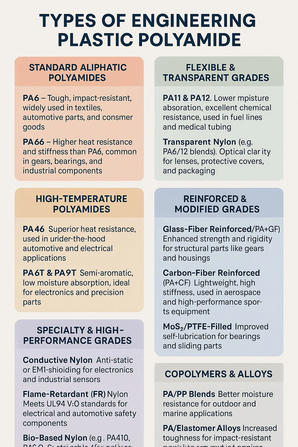 PA66 - rintangan haba yang lebih tinggi dan kekakuan daripada PA6, biasa dalam gear, galas, dan komponen perindustrian.