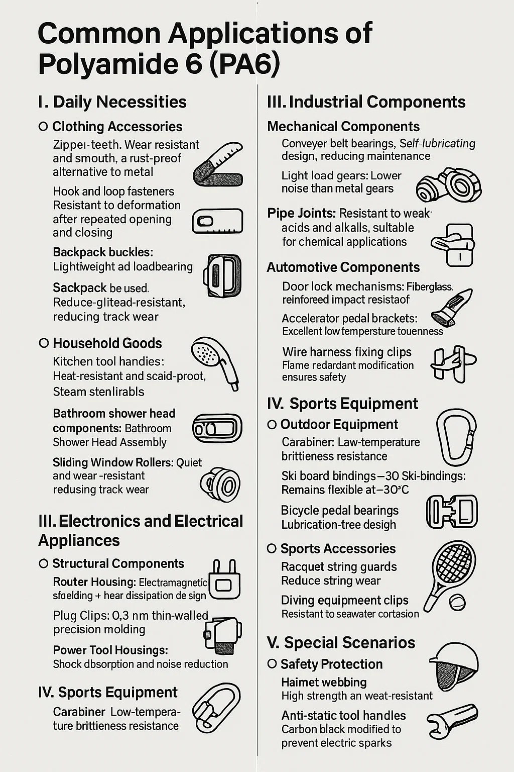 Berikut adalah pengenalan kepada aplikasi biasa Polyamide 6 (PA6):