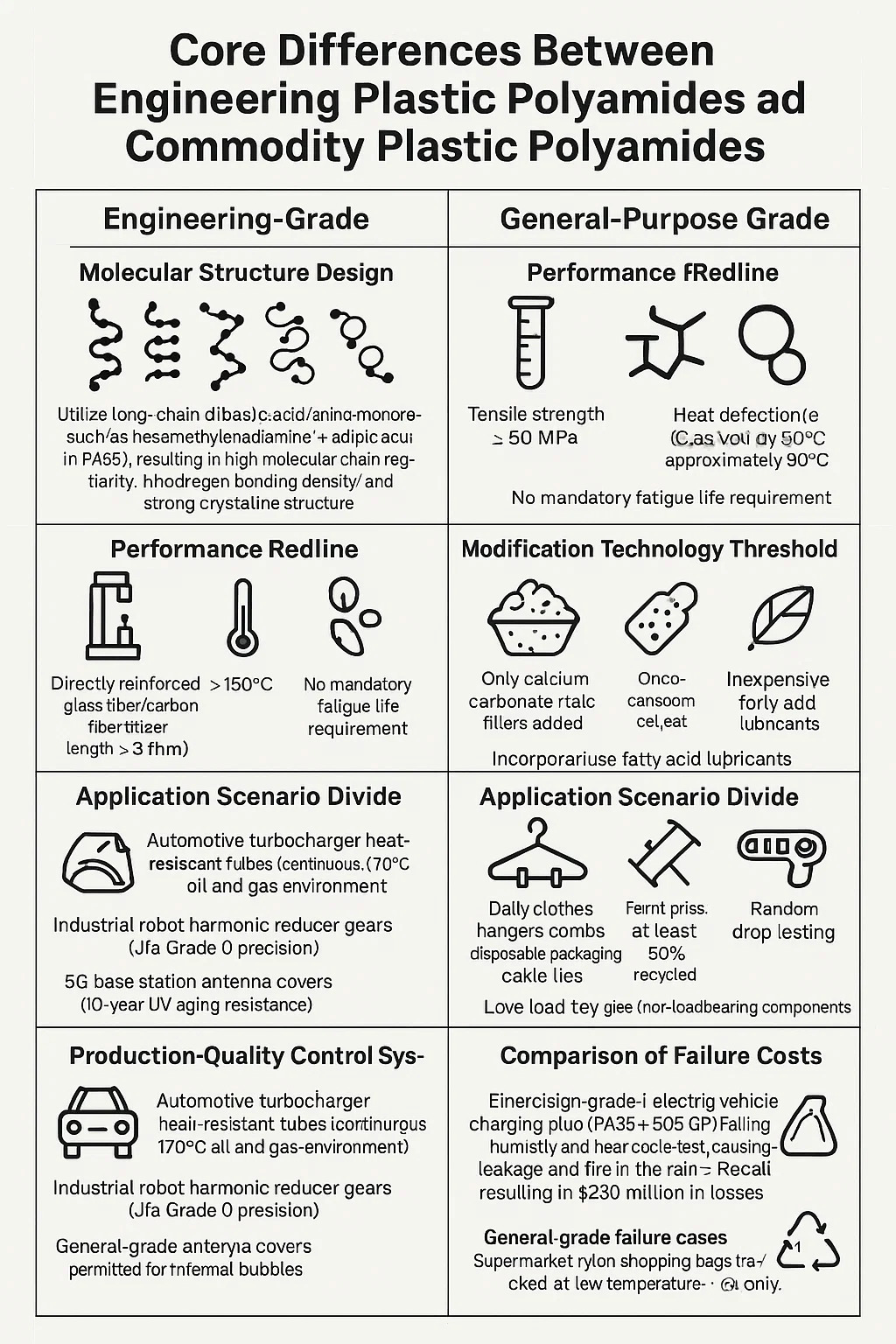 Perbezaan teras antara Polyamides plastik kejuruteraan dan poliamida plastik komoditi